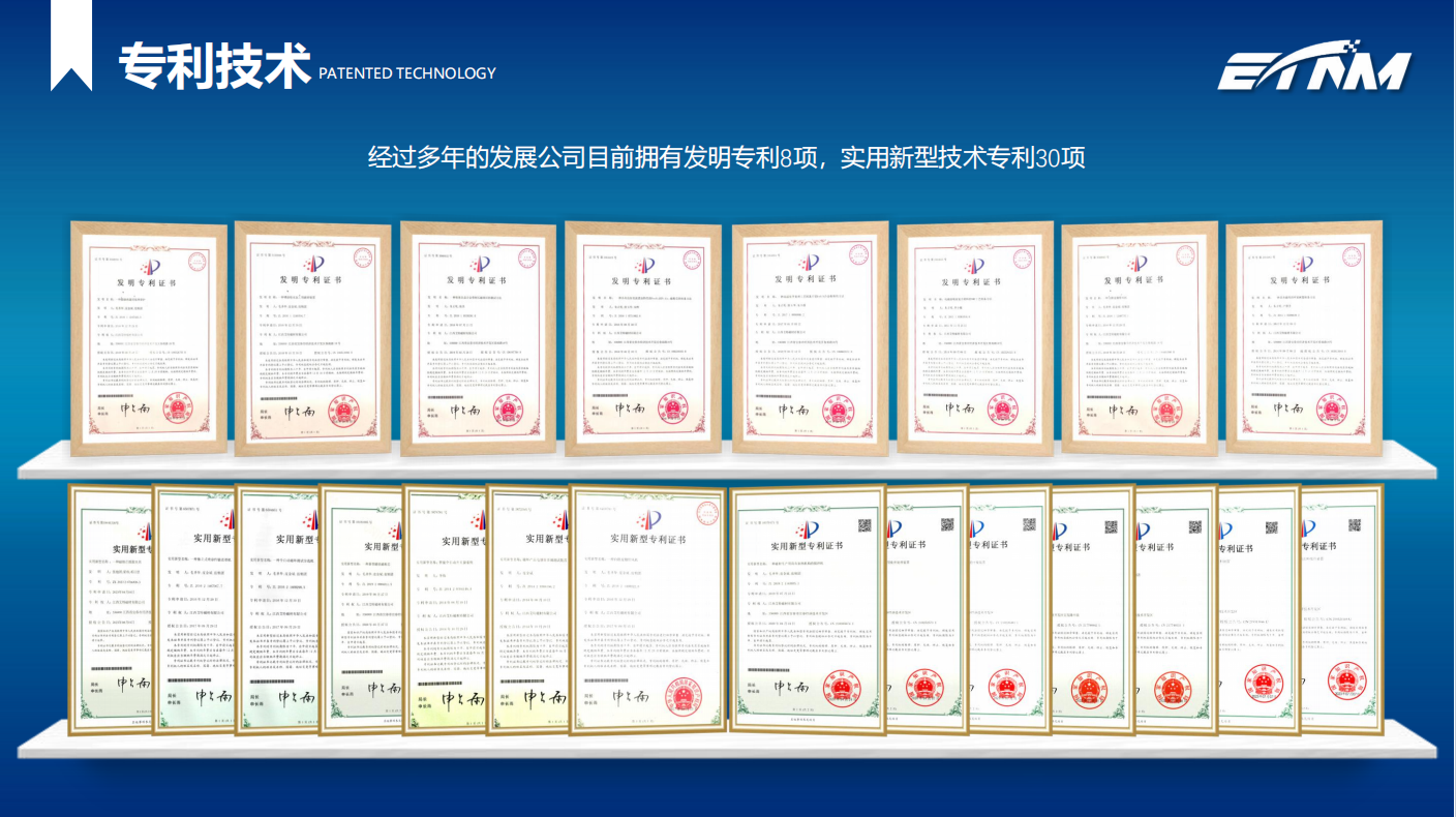 截止2021年8月,公司现有专利69项,其中发明专利38项,实用新型专利31项。
